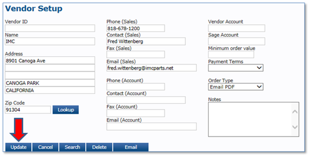 Click on Setup → Vendor